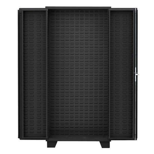 Bin Cabinet, Base Type Legs, Cabinet Color Black, Cabinet Storage Components Bins, Shelves, Door Type Flush, Solid, Frame Assembled Assembled, Mobility Stationary, Number of Bins 0, Number of Shelves 1, Overall Depth 24 in, Overall Height 82 in, Overall Width 36 in, Cabinet Finish Powder Coated