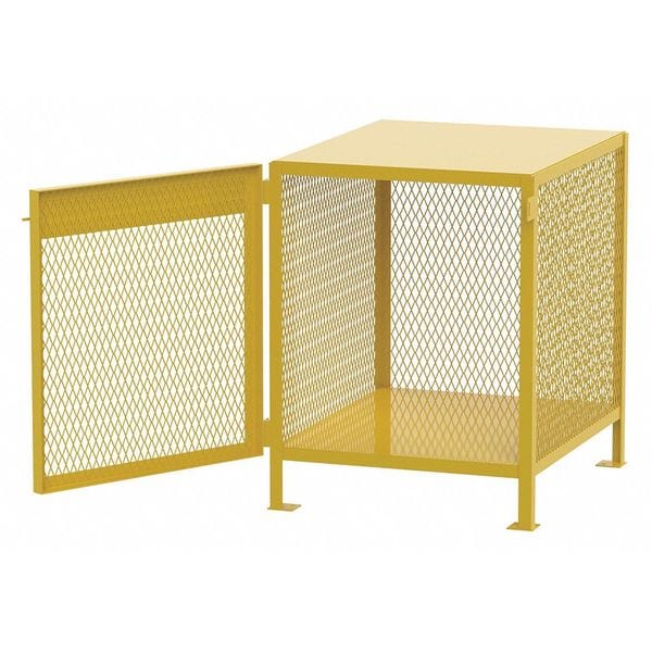 Cylinder Storage Cabinet, Assembled Assembled, Color Yellow, Compatible Tank Size 20 lb to 43 lb, Construction Welded, Cylinder Storage Orientation Vertical, Door Closure Type Manual, Door Construction Mesh, Door Handle Type Slide Bolt Latch, Exterior Depth 38 in, Exterior Height 39 in, Exterior Width 33 in, Finish Powder Coated, Fire Lined Fire Lining Not Included, Horizontal Cylinder Capacity Not Applicable, Lock Type Not Applicable, Material Steel, NFPA 30 Not NFPA 30 Compliant