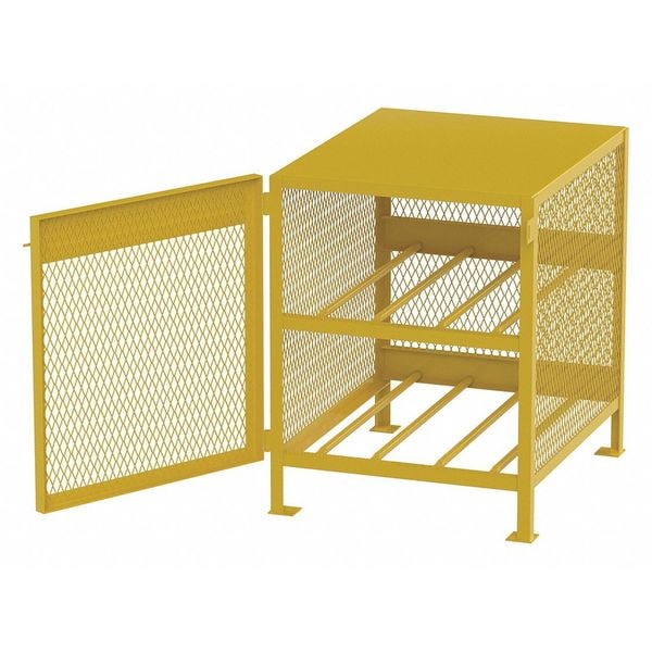 Cylinder Storage Cabinet, Assembled Assembled, Color Yellow, Compatible Tank Size 20 lb to 43 lb, Construction Welded, Cylinder Storage Orientation Horizontal, Door Closure Type Manual, Door Construction Mesh, Door Handle Type Slide Bolt Latch, Exterior Depth 40 in, Exterior Height 40 in, Exterior Width 33 in, Finish Powder Coated, Fire Lined Fire Lining Not Included, Horizontal Cylinder Capacity 4, Includes Predrilled Footpads, Lock Type Not Applicable, Material Steel