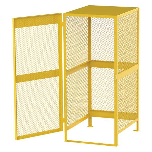 Cylinder Storage Cabinet, Assembled Assembled, Color Yellow, Compatible Tank Size 20 lb to 43 lb, Construction Welded, Cylinder Storage Orientation Vertical, Door Closure Type Manual, Door Construction Mesh, Door Handle Type Slide Bolt Latch, Exterior Depth 40 in, Exterior Height 71 in, Exterior Width 33 in, Finish Powder Coated, Fire Lined Fire Lining Not Included, Horizontal Cylinder Capacity Not Applicable, Includes Predrilled Footpads, Lock Type Not Applicable, Material Steel