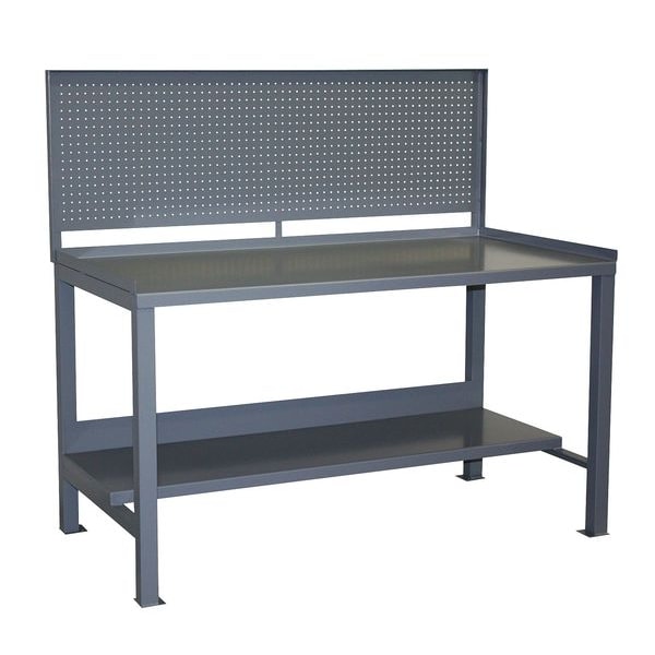 Workbench, Height Adjustability Fixed Height, Top Material Steel, Assembly Fully Assembled, Color Gray, Frame Material Steel, Leg Type Straight Leg, Maximum Adjustable Height Not Applicable, Minimum Adjustable Height Not Applicable, Non-Metal Top Thickness Not Applicable, Number of Cabinets 0, Number of Drawers 0, Number of Knockouts 0, Included Components Lower Shelf, Pegboard, Number of Outlets 0, Number of Shelves 2, Overall Depth 30 in, Overall Fixed Height 57 in