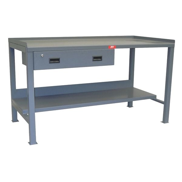 Workbench, Height Adjustability Fixed Height, Top Material Steel, Assembly Fully Assembled, Color Gray, Frame Material Steel, Leg Type Straight Leg, Maximum Adjustable Height Not Applicable, Minimum Adjustable Height Not Applicable, Non-Metal Top Thickness Not Applicable, Number of Cabinets 0, Number of Drawers 1, Number of Knockouts 0, Included Components Back Stop, Drawers, Lower Shelf, Side Stops, Number of Outlets 0, Number of Shelves 2, Overall Depth 30 in, Overall Fixed Height 35 in
