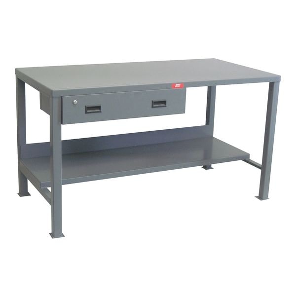 Workbench, Height Adjustability Fixed Height, Top Material Steel, Assembly Fully Assembled, Color Gray, Frame Material Steel, Leg Type Straight Leg, Maximum Adjustable Height Not Applicable, Minimum Adjustable Height Not Applicable, Non-Metal Top Thickness Not Applicable, Number of Cabinets 0, Number of Drawers 1, Number of Knockouts 0, Included Components Back Stop, Drawers, Lower Shelf, Number of Outlets 0, Number of Shelves 2, Overall Depth 30 in, Overall Fixed Height 34 in