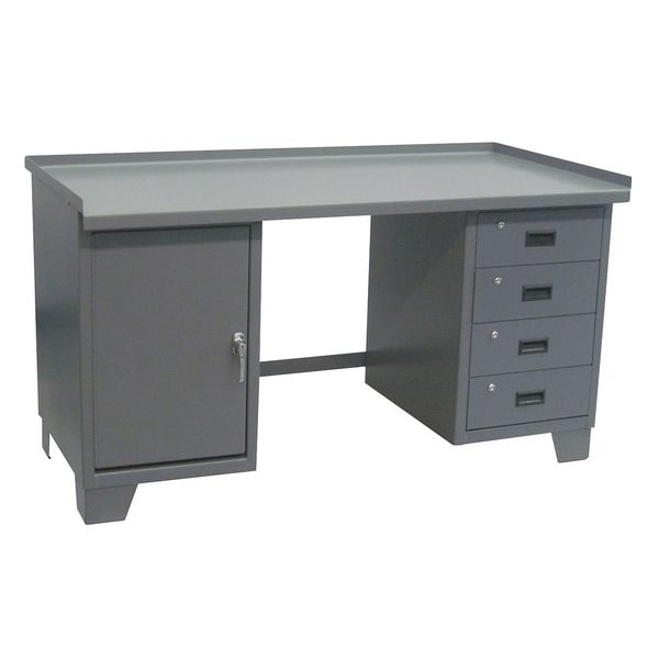 Workbench, Height Adjustability Fixed Height, Top Material Steel, Assembly Fully Assembled, Color Gray, Frame Material Steel, Leg Type Pedestal Cabinet Base, Maximum Adjustable Height Not Applicable, Minimum Adjustable Height Not Applicable, Non-Metal Top Thickness Not Applicable, Number of Cabinets 1, Number of Drawers 4, Number of Knockouts 0, Included Components Back Stop, Drawers, Side Stops, Number of Outlets 0, Number of Shelves 0, Overall Depth 30 in, Overall Fixed Height 34 in