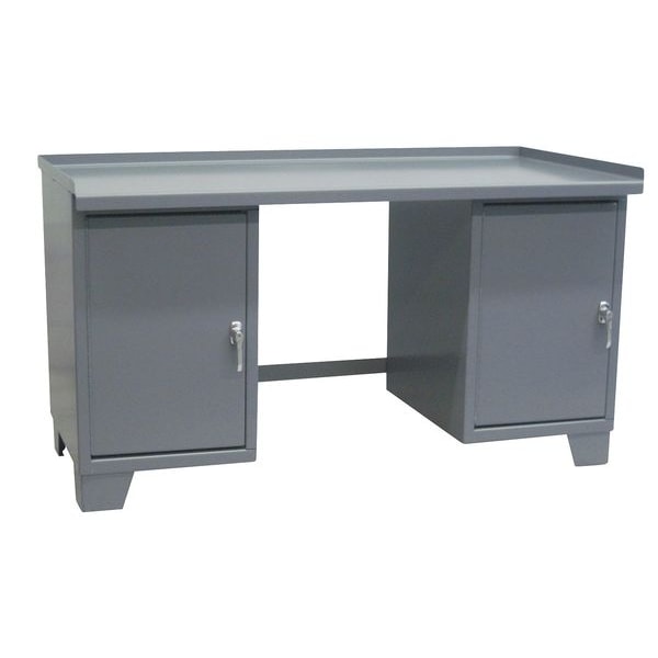 Workbench, Height Adjustability Fixed Height, Top Material Steel, Assembly Fully Assembled, Color Gray, Frame Material Steel, Leg Type Pedestal Cabinet Base, Maximum Adjustable Height Not Applicable, Minimum Adjustable Height Not Applicable, Non-Metal Top Thickness Not Applicable, Number of Cabinets 2, Number of Drawers 0, Number of Knockouts 0, Included Components Back Stop, Side Stops, Number of Outlets 0, Number of Shelves 0, Overall Depth 30 in, Overall Fixed Height 34 in