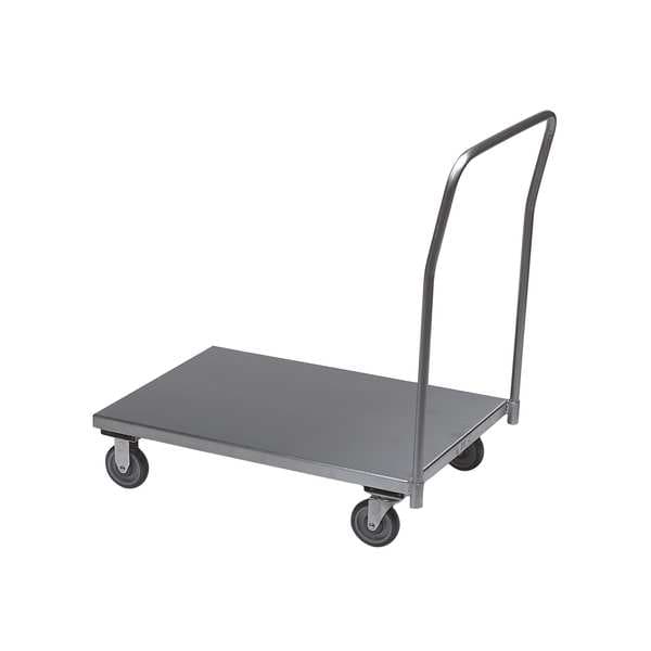 Platform Truck, Load Capacity 1,200 lb, Overall Height 39 in, Overall Length 65 in, Overall Width 31 in, Deck Construction Solid, Deck Material Stainless Steel, Deck Finish/Coating Polished, Deck Gauge 16 ga, Deck Height 9 in, Deck Length 60 in, Deck Width 30 in, Deck Surface Smooth, Frame Material Stainless Steel, Handle Type Removable Raised, Lip Style Flush, Side Panel Type No Side Panels, Number of Platforms 1, Color Silver