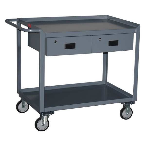 General Purpose Steel Mobile Workstation, Assembled/Unassembled Assembled, Caster Mounting Type Plate, Caster Wheel Dia. 5 in, Caster Wheel/Tread Material Polyolefin, Caster/Wheel Configuration (2) Rigid, (2) Swivel, Caster/Wheel Mounting Location Standard, Color Gray