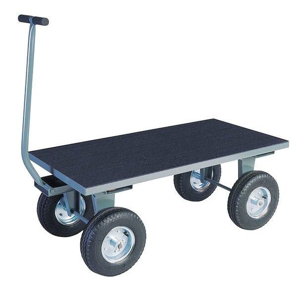 Shock-Absorbing Wagon Truck with Flush Metal Deck, Load Capacity 2,000 lb, Deck Length 36 in, Deck Width 24 in, Deck Surface Non-Slip, Deck Construction Solid, Deck Material Steel, Deck Finish/Coating Powder Coated, Deck Height 19 in, Frame Material Steel, Frame Finish/Coating Powder Coated, Frame Gauge 12 ga, Handle Type T-Shaped