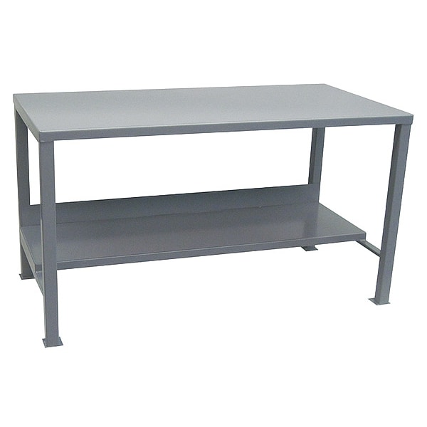 Workbench, Height Adjustability Fixed Height, Top Material Steel, Assembly Fully Assembled, Color Gray, Frame Material Steel, Leg Type Straight Leg, Maximum Adjustable Height Not Applicable, Minimum Adjustable Height Not Applicable, Non-Metal Top Thickness Not Applicable, Number of Cabinets 0, Number of Drawers 0, Number of Knockouts 0, Included Components Back Stop, Lower Shelf, Number of Outlets 0, Number of Shelves 2, Overall Depth 36 in, Overall Fixed Height 34 in
