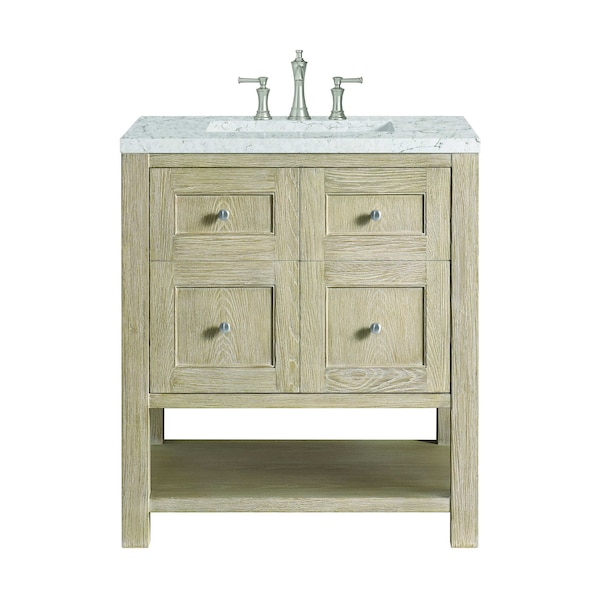 30'' Single Vanity, Whitewashed Oak w/ 3 CM Eternal Jasmine Pearl Quartz Top