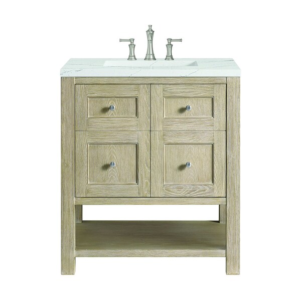 30'' Single Vanity, Whitewashed Oak w/ 3 CM Ethereal Noctis Quartz Top