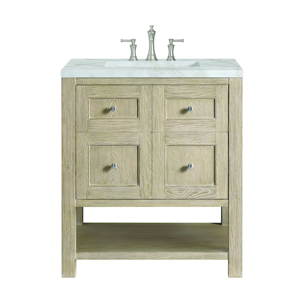 30'' Single Vanity, Whitewashed Oak w/ 3 CM Victorian Silver Quartz Top