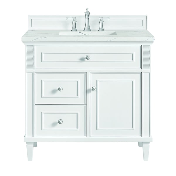 36'' Single Vanity, Bright White w/ 3 CM Ethereal Noctis Quartz Top