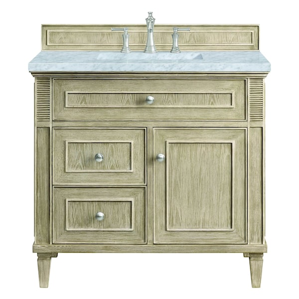 36'' Single Vanity, Whitewashed Oak w/ 3 CM Carrara White Marble Top