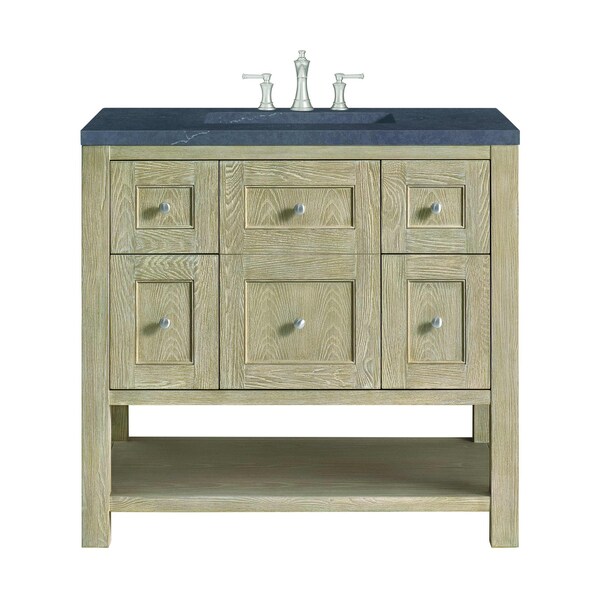 36'' Single Vanity, Whitewashed Oak w/ 3 CM Charcoal Soapstone Quartz Top