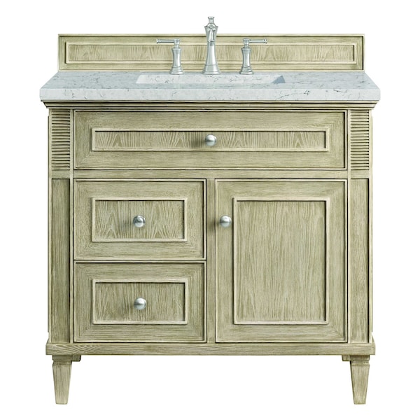 36'' Single Vanity, Whitewashed Oak w/ 3 CM Eternal Jasmine Pearl Quartz Top