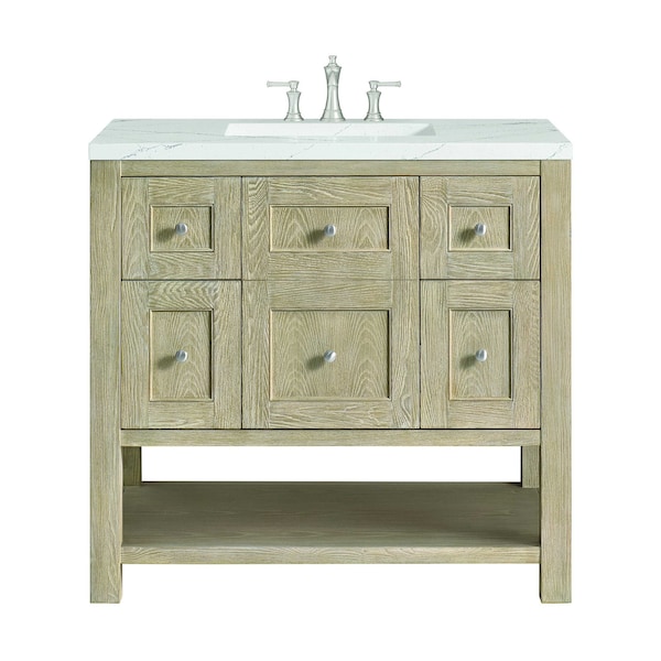 36'' Single Vanity, Whitewashed Oak w/ 3 CM Ethereal Noctis Quartz Top