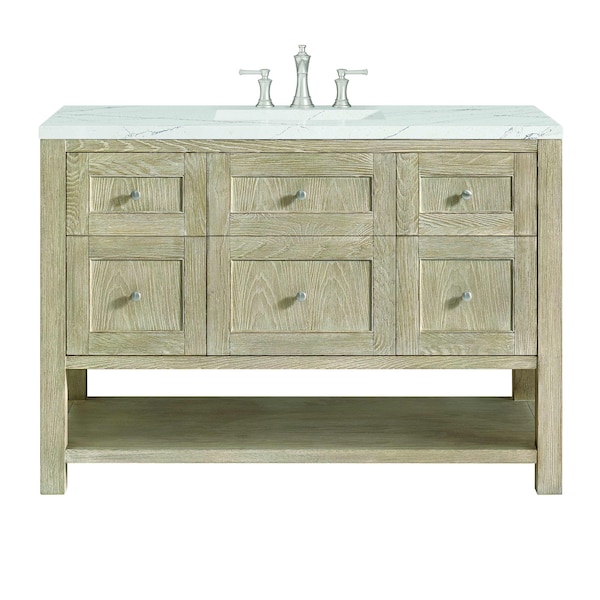 48'' Single Vanity, Whitewashed Oak w/ 3 CM Ethereal Noctis Quartz Top