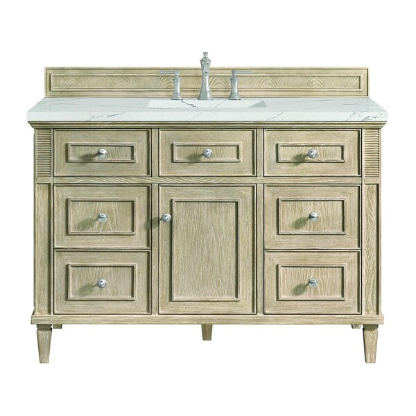 48'' Single Vanity, Whitewashed Oak w/ 3 CM Ethereal Noctis Quartz Top