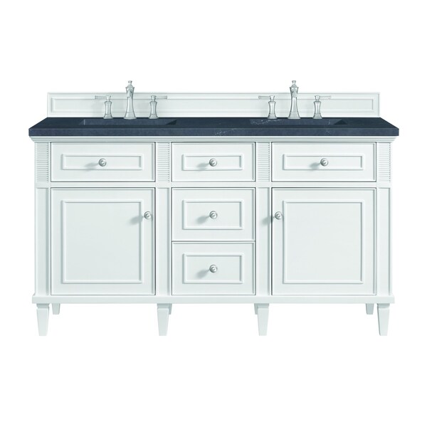 60'' Double Vanity, Bright White w/ 3 CM Charcoal Soapstone Quartz Top