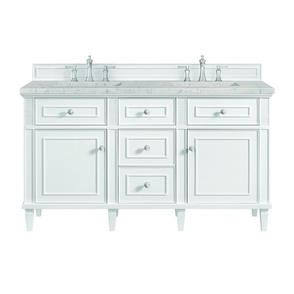 60'' Double Vanity, Bright White w/ 3 CM Eternal Jasmine Pearl Quartz Top