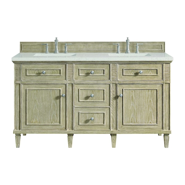 60'' Double Vanity, Whitewashed Oak w/ 3 CM Lime Delight Quartz Top