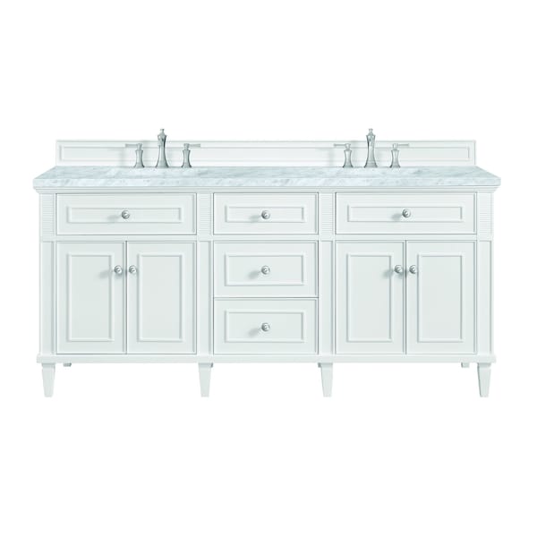 72'' Double Vanity, Bright White w/ 3 CM Carrara White Marble Top