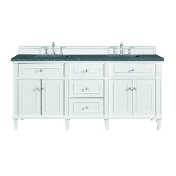 72'' Double Vanity, Bright White w/ 3 CM Parisien Bleu Quartz Top
