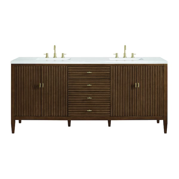 72'' Double Vanity, Mid Century Walnut w/ 3 CM Arctic Fall Solid Surface Top