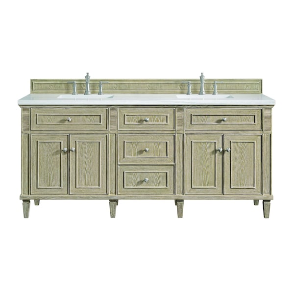 72'' Double Vanity, Whitewashed Oak w/ 3 CM Arctic Fall Solid Surface Top