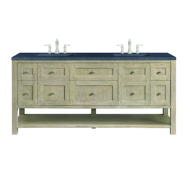 72'' Double Vanity, Whitewashed Oak w/ 3 CM Charcoal Soapstone Quartz Top