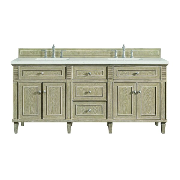 72'' Double Vanity, Whitewashed Oak w/ 3 CM Lime Delight Quartz Top