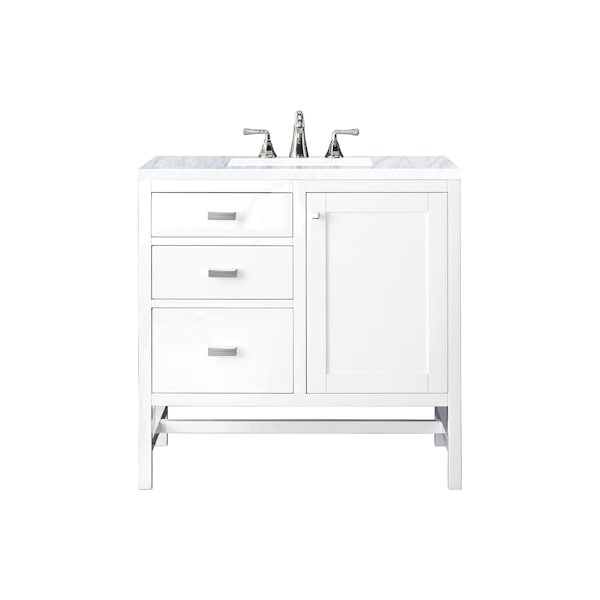 Addison 36in Single Vanity, Glossy White w/ 3 CM Carrara White Top