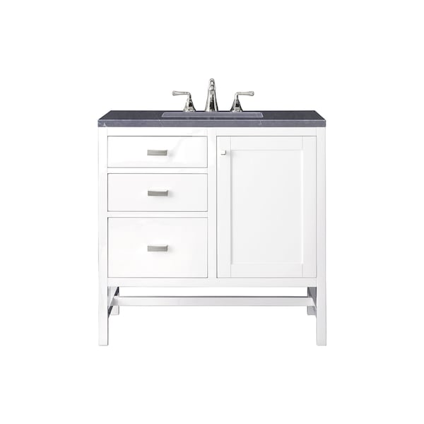 Addison 36in Single Vanity, Glossy White w/ 3 CM Charcoal Soapstone Quartz Top