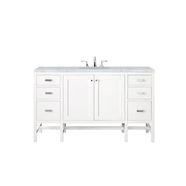 Addison 60in Single Vanity, Glossy White w/ 3 CM Carrara White Top