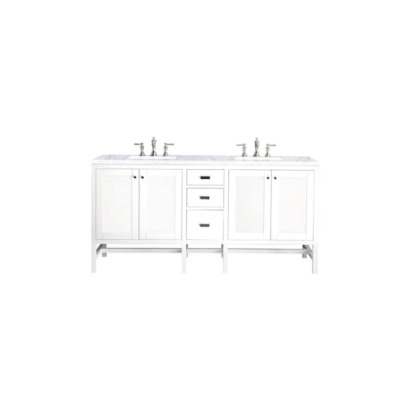 Addison 72in Double Vanity, Glossy White w/ 3 CM Carrara White Top