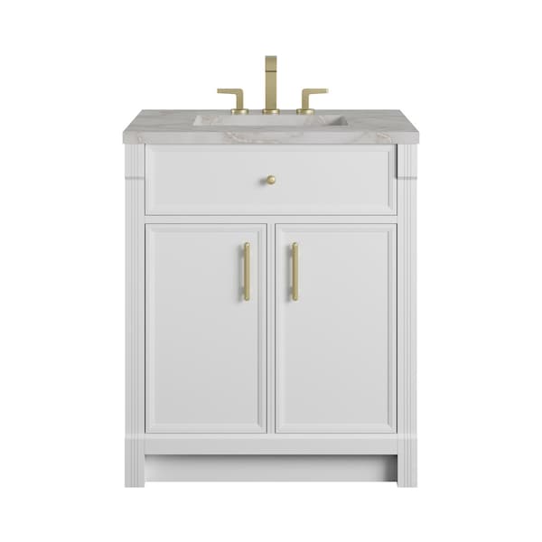 Bellshire 30" Single Vanity, Bright White w/ 3 CM Victorian Silver Silestone Top