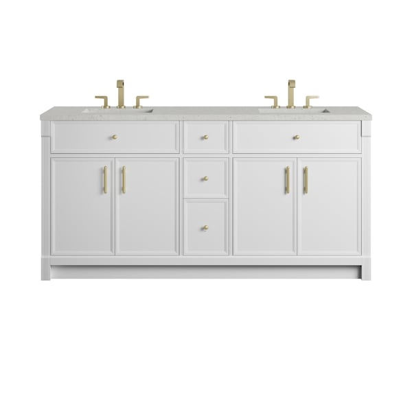 Bellshire 72" Double Vanity, Bright White w/ 3 CM Lime Delight Silestone Top