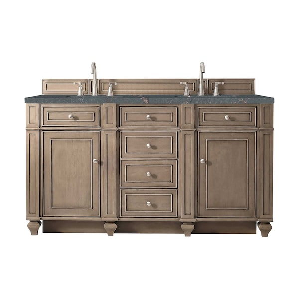 Bristol 60'' D Vanity, Whitewashed Walnut w/ Parisien Bleu Silestone Top w/ Wireless Charger