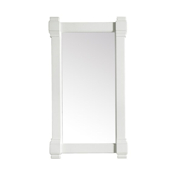 Decorate your bathroom area with this Brittany 22in Mirror by James Martin Vanities. Featuring a poplar wood frame construction with a Bright White finish and a Bevel-cut glass design on the edges, this mirror complements your traditional or transitional decor delightfully. The sleek design allows you to create an elegant space for getting ready every morning, with a clear view of your makeup and outfit. This mirror includes a keyhole style bracket for easy hanging in your bathroom or bedroom.