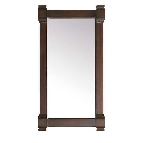 Decorate your bathroom area with this Brittany 22in Mirror by James Martin Vanities. Featuring a poplar wood frame construction with a Burnished Mahogany finish and a Bevel-cut glass design on the edges, this mirror complements your traditional or transitional decor delightfully. The sleek design allows you to create an elegant space for getting ready every morning, with a clear view of your makeup and outfit. This mirror includes a keyhole style bracket for easy hanging in your bathroom or bedroom.