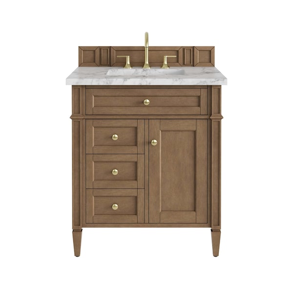 Brittany 30" Single Vanity, Pecan w/ 3 CM Carrara Marble Top