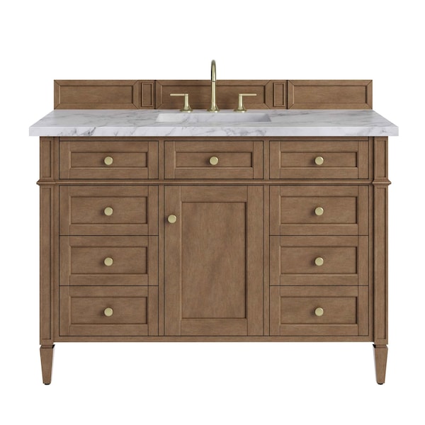 Brittany 48" Single Vanity, Pecan w/ 3 CM Carrara Marble Top