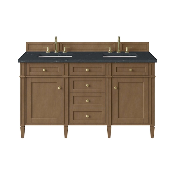 Brittany 60" Double Vanity, Pecan w/ 3 CM Charcoal Soapstone Silestone Top