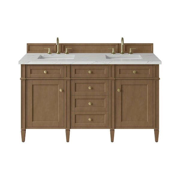 Brittany 60" Double Vanity, Pecan w/ 3 CM Ethereal Noctis Silestone Top