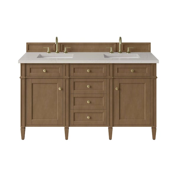 Brittany 60" Double Vanity, Pecan w/ 3 CM Siberian Silestone Top