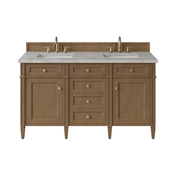 Brittany 60" Double Vanity, Pecan w/ 3 CM Victorian Silver Silestone Top