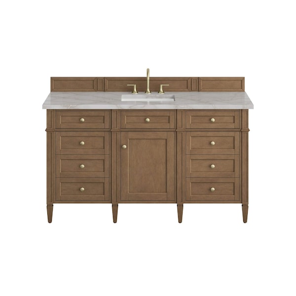 Brittany 60" Single Vanity, Pecan w/ 3 CM Victorian Silver Silestone Top