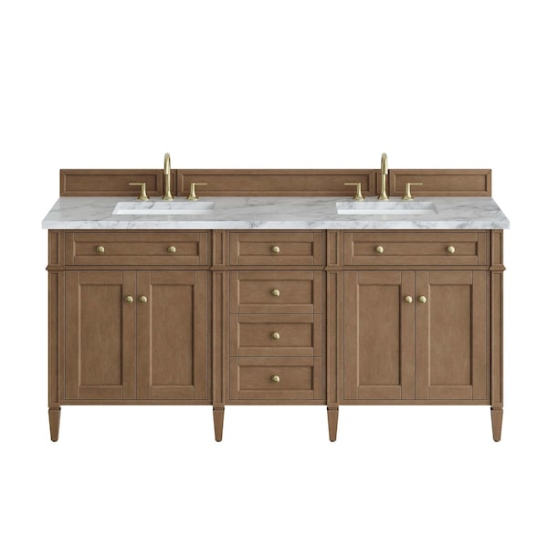 Brittany 72" Double Vanity, Pecan w/ 3 CM Carrara Marble Top