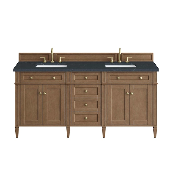 Brittany 72" Double Vanity, Pecan w/ 3 CM Charcoal Soapstone Silestone Top